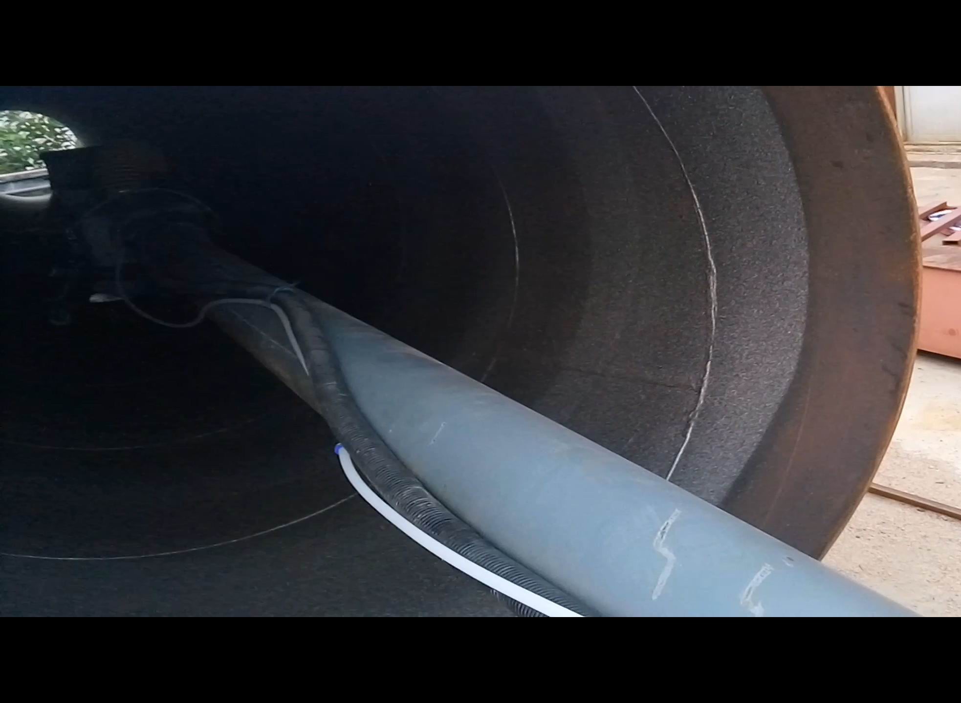 采用液壓馬達驅動,噴丸清理采用啟動馬達驅動。 我公司設計的有大管徑的內壁拋丸機和直徑600mm以下的小型鋼管噴丸機等。該設備采用自動拋丸去除表面銹蝕,利用拋丸器拋出的高速